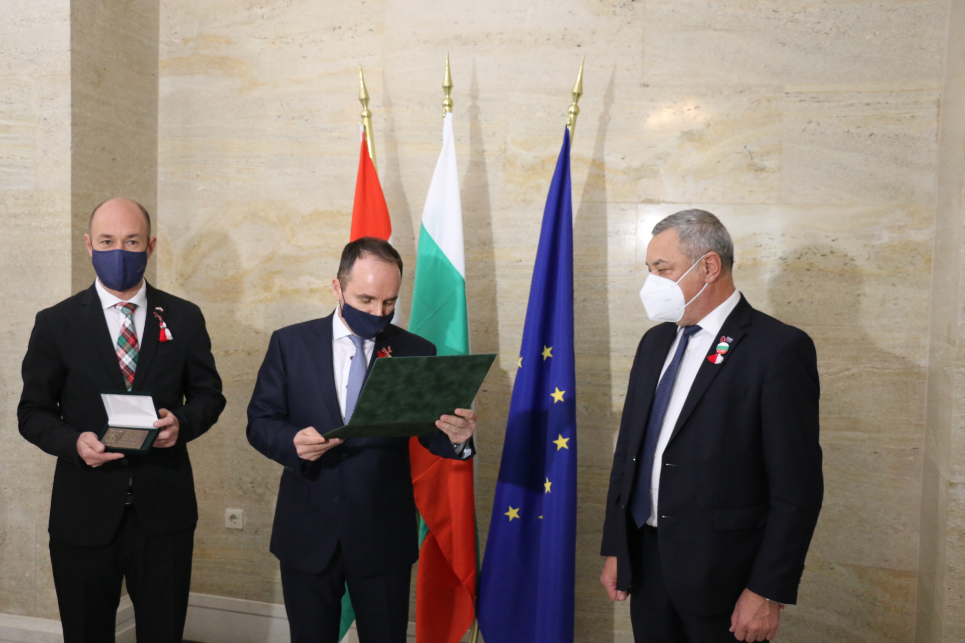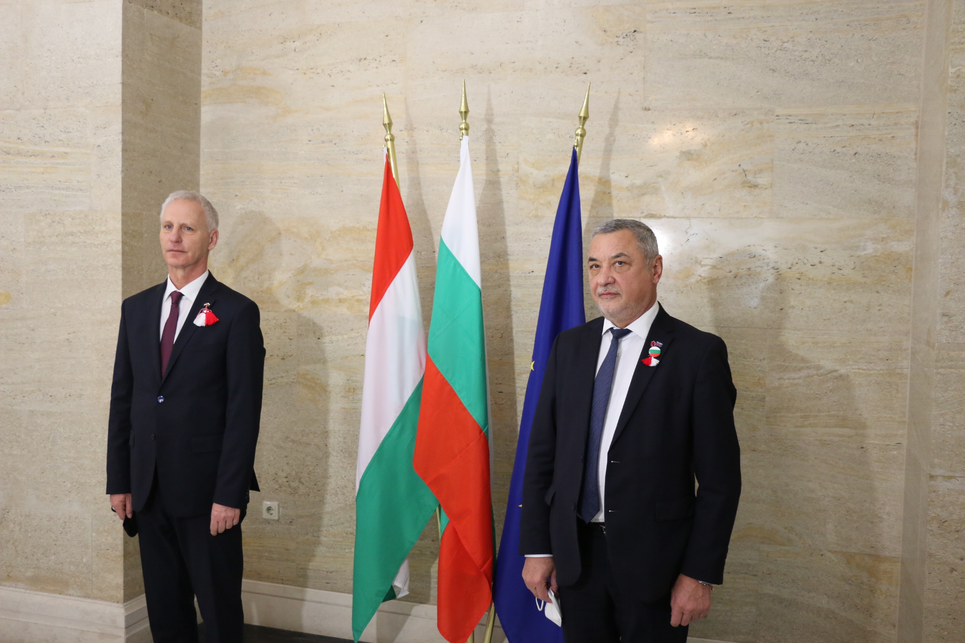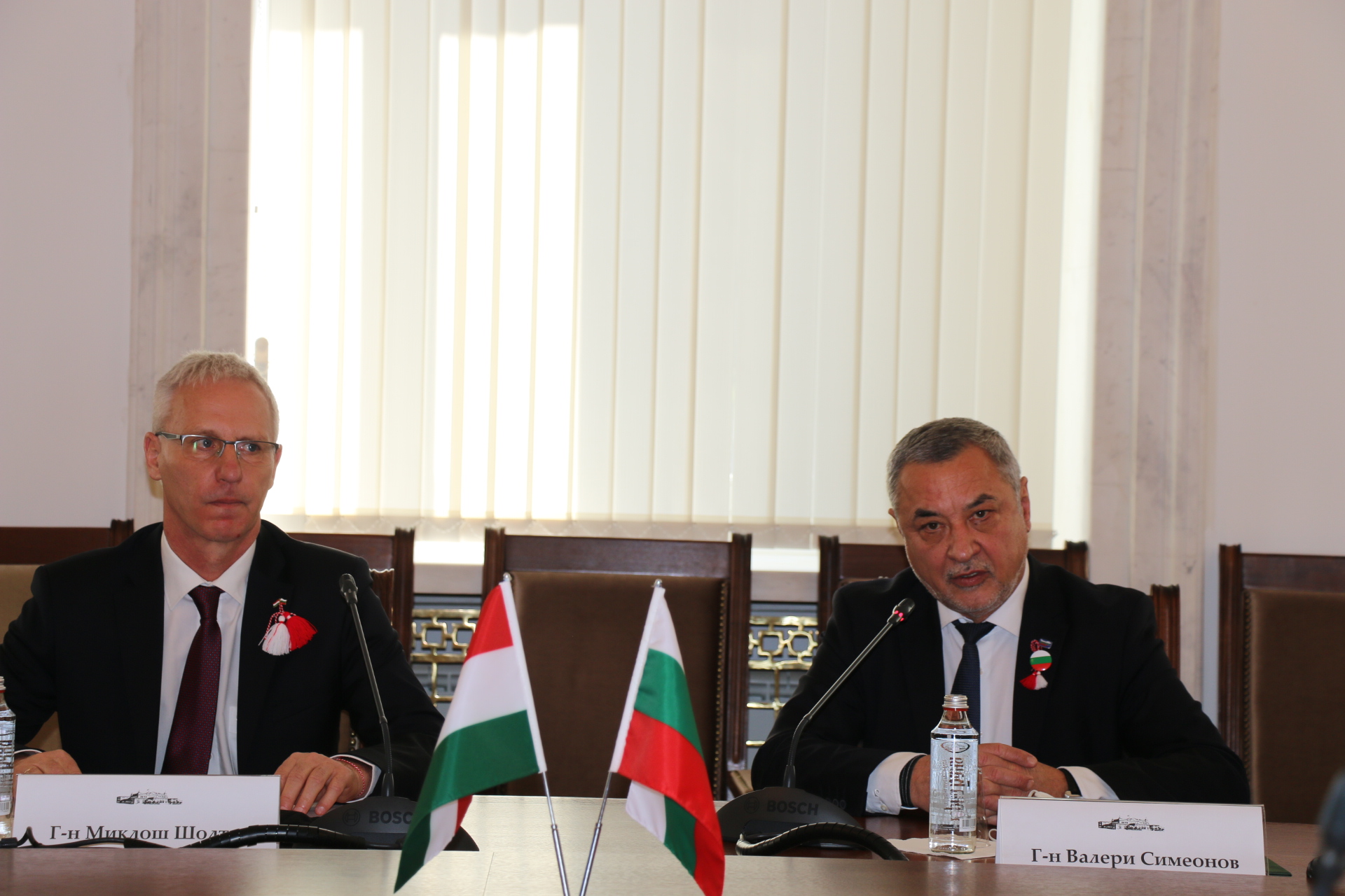 Заместник-председателят на Народното събрание Валери Симеонов благодари за високото отличие и подчерта, че българско-унгарските отношения в последните няколко години се задълбочават и активизират. Той припомни, че принос за това има и единодушно приетото от Народното събрание решение за обявяване на 19 октомври за Ден на българо-унгарското приятелство. Прецедент е за България да има ден на приятелство с друга държава, а фактът, че тази държава е Унгария, показва колко много държим и сме готови да работим за още по-интензивните контакти във всички области от взаимен интерес, добави Валери Симеонов.